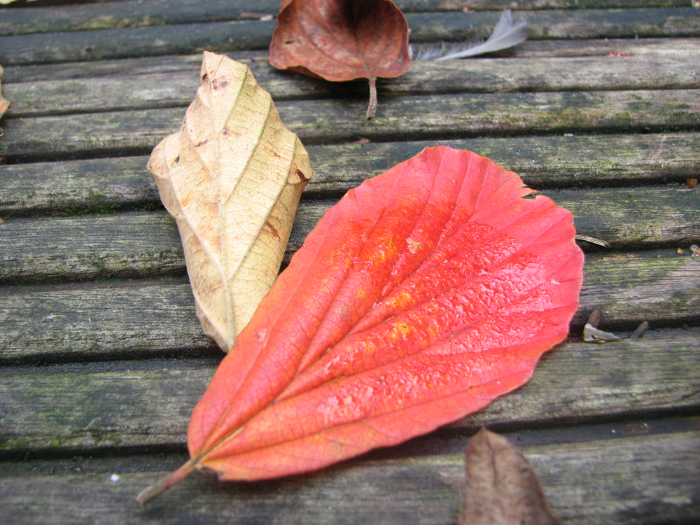 Onze toverhazelaar 'vlamt' ook zo lekker. Helaas zijn de meeste blaadjes er al af.